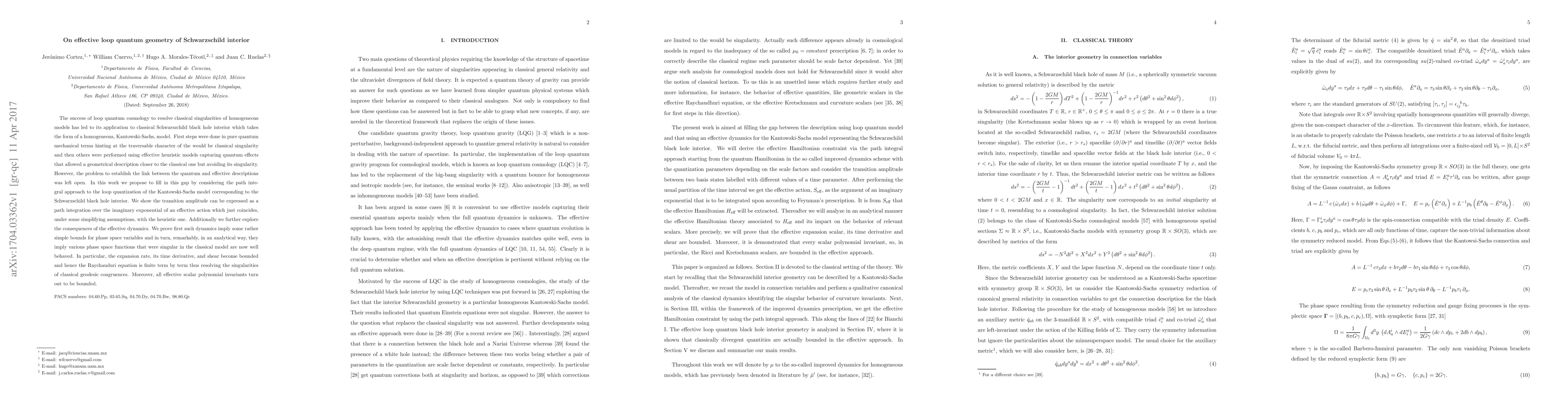 This paper explores the effective loop quantum geometry of the Schwarzschild black hole interior, proposing a path-integral approach to link quantum and effective descriptions. It shows that effective dynamics resolve singularities in classical models, rendering phase-space functions well-behaved and ensuring finite terms in the Raychaudhuri equation.