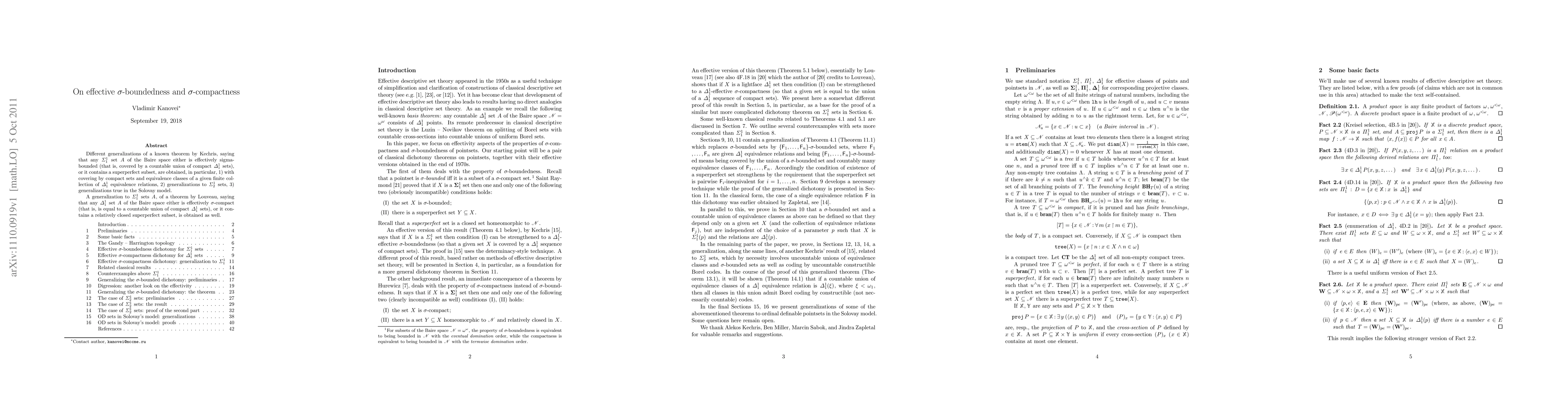 This paper proves theorems on sigma-boundedness and sigma-compactness for lightface \Sigma^1_1 and \Sigma^1_2 sets in the Baire space, generalizing results from Kechris and Louveau. It includes effective properties involving compact sets and equivalence relations, and extends findings to the Solovay model.