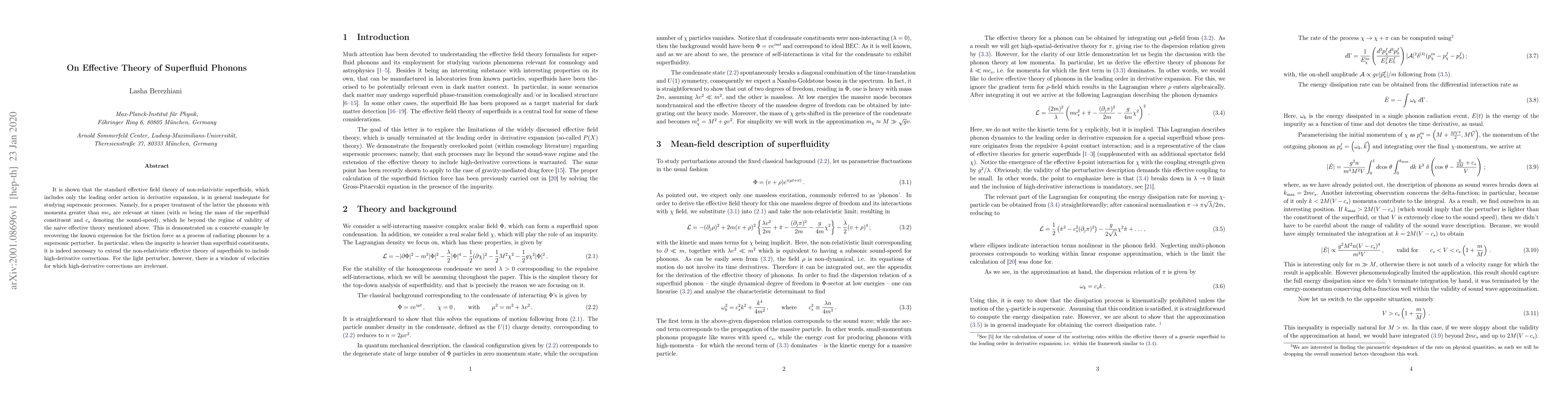 It is shown that the standard effective field theory of non-relativistic superfluids, which includes only the leading order action in derivative expansion, is in general inadequate for studying supersonic processes. Namely, for a proper treatment of the latter the phonons with momenta greater than $mc_s$ are relevant at times (with $m$ being the mass of the superfluid constituent and $c_s$ denoting the sound-speed), which lie beyond the regime of validity of the naive effective theory mentioned above. This is demonstrated on a concrete example by recovering the known expression for the friction force as a process of radiating phonons by a supersonic perturber. In particular, when the impurity is heavier than superfluid constituents, it is indeed necessary to extend the non-relativistic effective theory of superfluids to include high-derivative corrections. For the light perturber, however, there is a window of velocities for which high-derivative corrections are irrelevant.