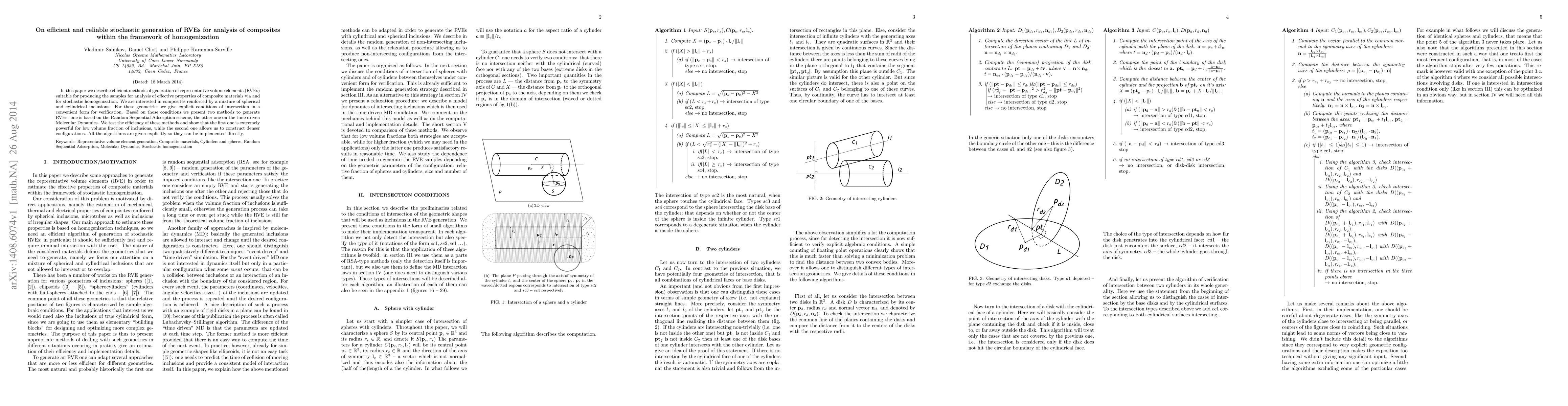 This paper presents efficient methods for generating representative volume elements (RVEs) for analyzing composite materials' effective properties using stochastic homogenization. It introduces two RVE generation methods: Random Sequential Adsorption and time-driven Molecular Dynamics, demonstrating their efficiency and suitability for different inclusion configurations.