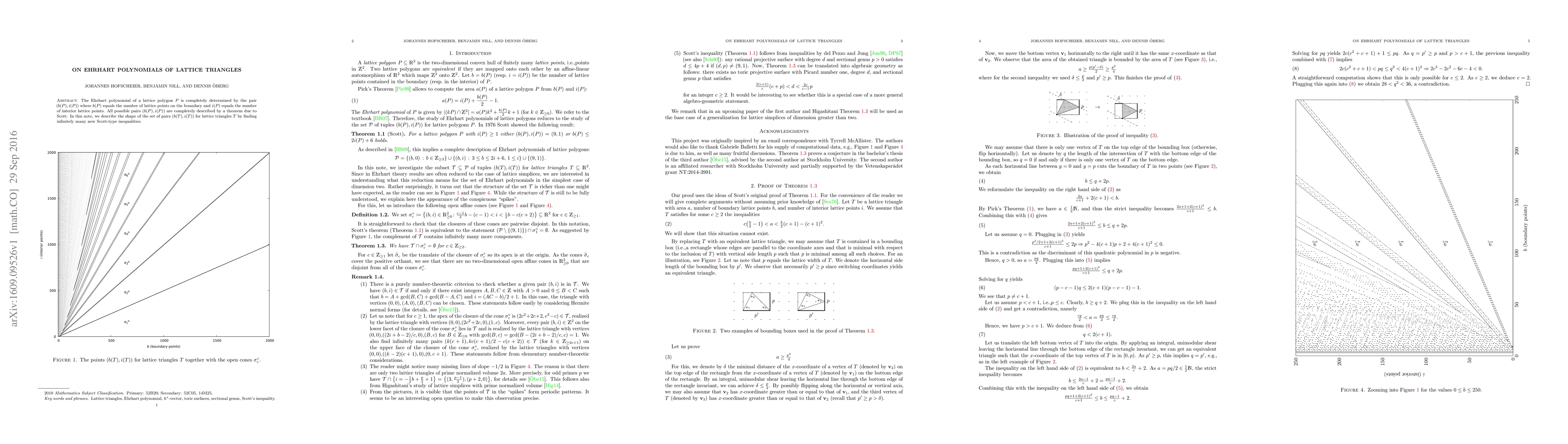 Researchers found infinitely many inequalities describing the shape of pairs (b(T),i(T)) for lattice triangles T, building on a theorem by Scott to understand Ehrhart polynomials.