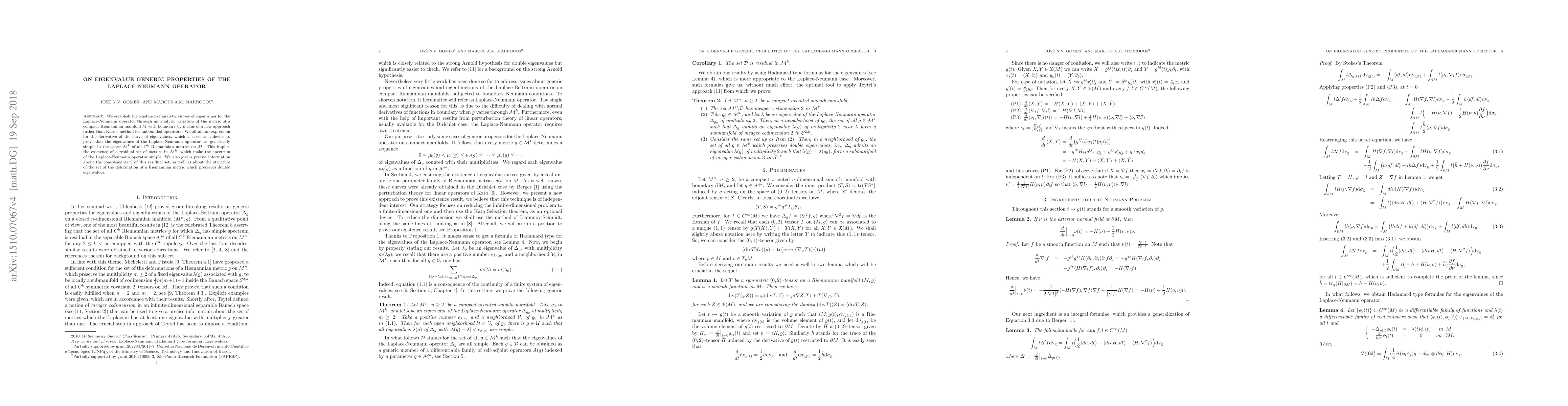 Researchers establish that eigenvalues of the Laplace-Neumann operator on a compact Riemannian manifold can vary analytically along curves in a way that makes them generally simple, with some metrics preserving double eigenvalues.