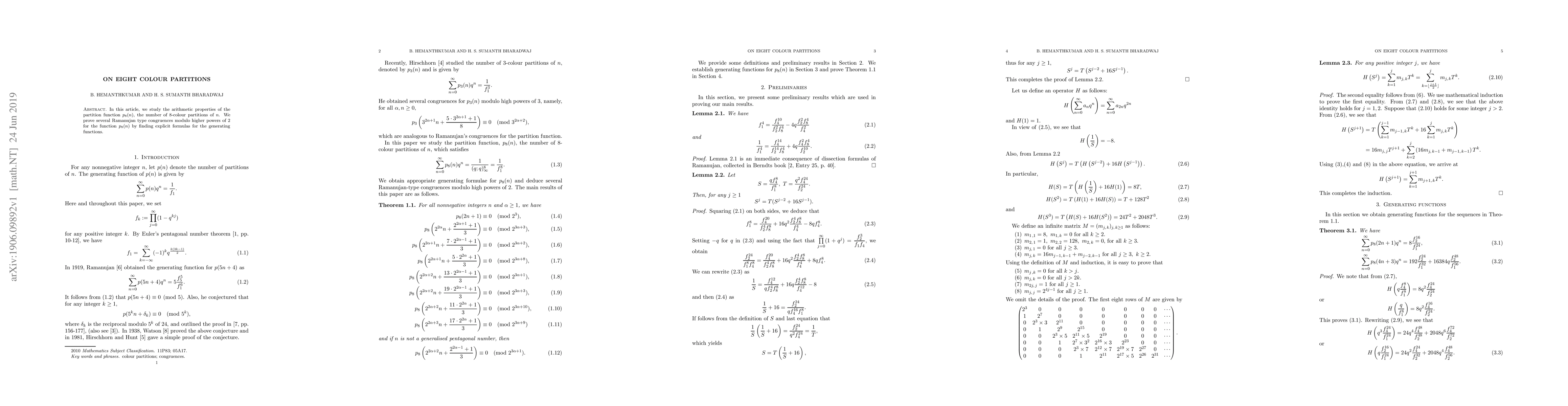 This paper investigates the arithmetic properties of 8-color partitions, deriving Ramanujan-type congruences for the partition function $p_8(n)$ using generating functions.
