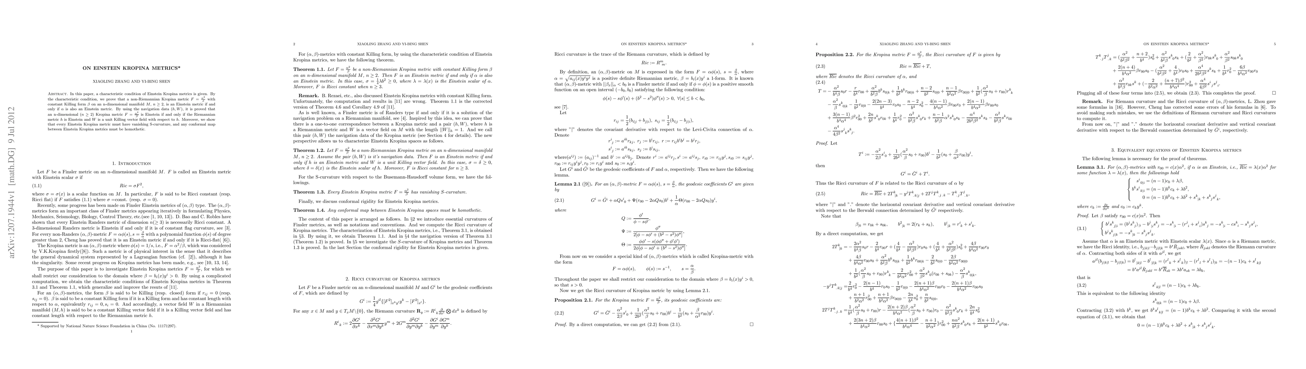 This paper explores Einstein Kropina metrics, proving that a non-Riemannian Kropina metric is Einstein if $\alpha$ is Einstein, and that such metrics have vanishing S-curvature. It also demonstrates that an n-dimensional Kropina metric is Einstein if its Riemannian part is Einstein and its associated vector field is a unit Killing vector.