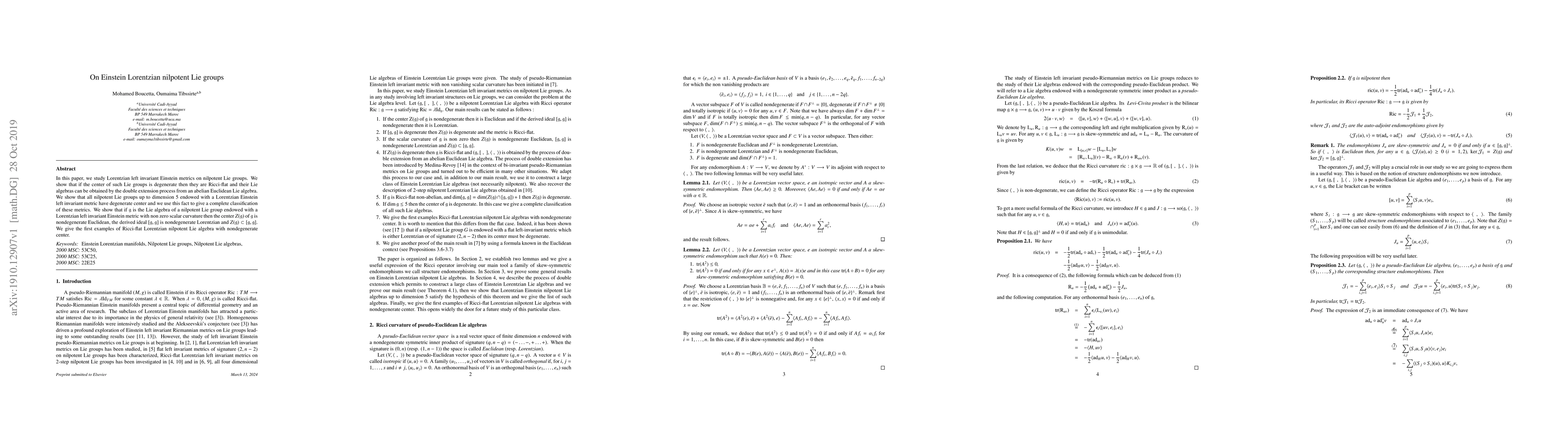 This paper classifies Lorentzian nilpotent Lie groups up to dimension 5 with Einstein metrics, showing that those with degenerate centers are Ricci-flat and derived from abelian Euclidean Lie algebras via double extensions. It also provides examples of Ricci-flat Lorentzian nilpotent Lie algebras with nondegenerate centers.