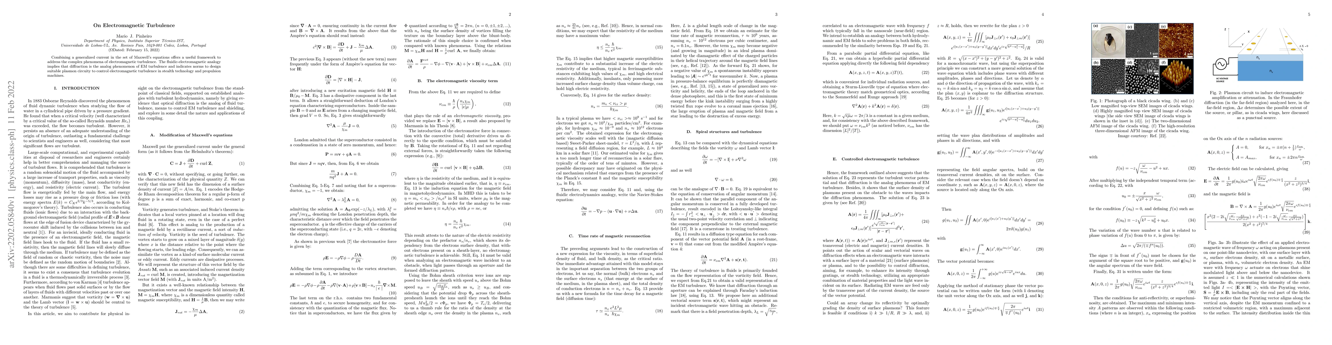Combining a generalized current in the set of Maxwell's equations offers a useful framework to address the complex phenomena of electromagnetic turbulence. The fluidic-electromagnetic analogy implies that diffraction is the analog phenomenon of EM turbulence and indicates norms to design suitable plasmon circuity to control electromagnetic turbulence in stealth technology and propulsion machines.