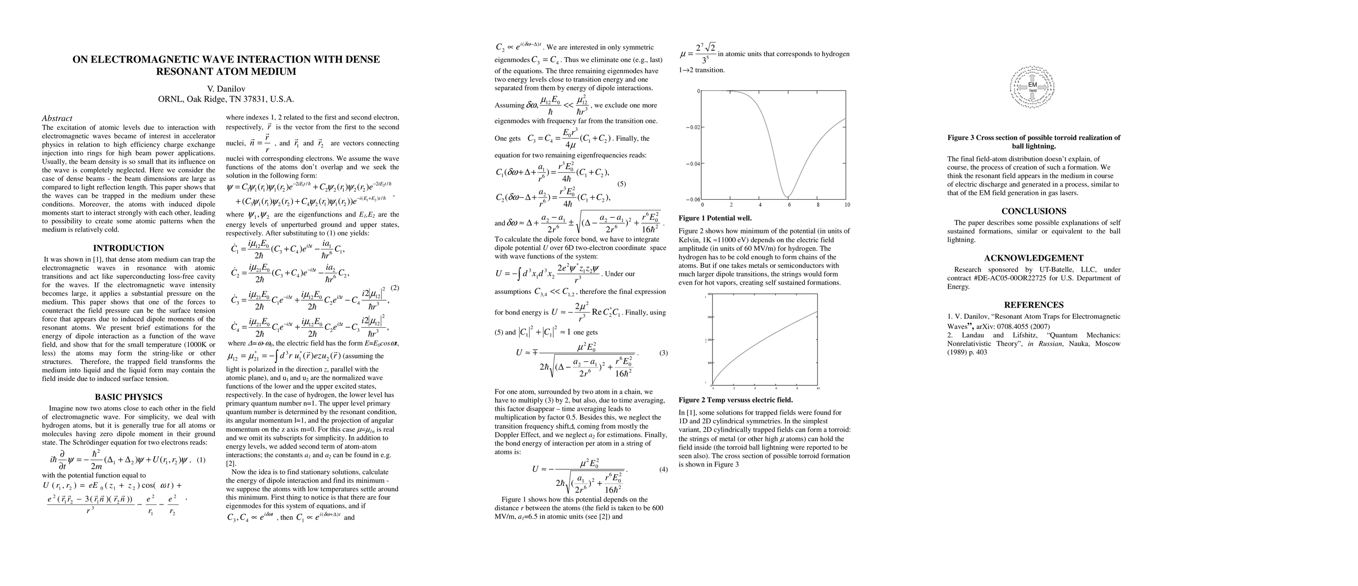 This paper investigates the interaction of electromagnetic waves with dense resonant atom mediums, demonstrating that waves can become trapped in such conditions. It also highlights the strong interaction between atoms with induced dipole moments, potentially leading to the formation of atomic patterns in relatively cold mediums.
