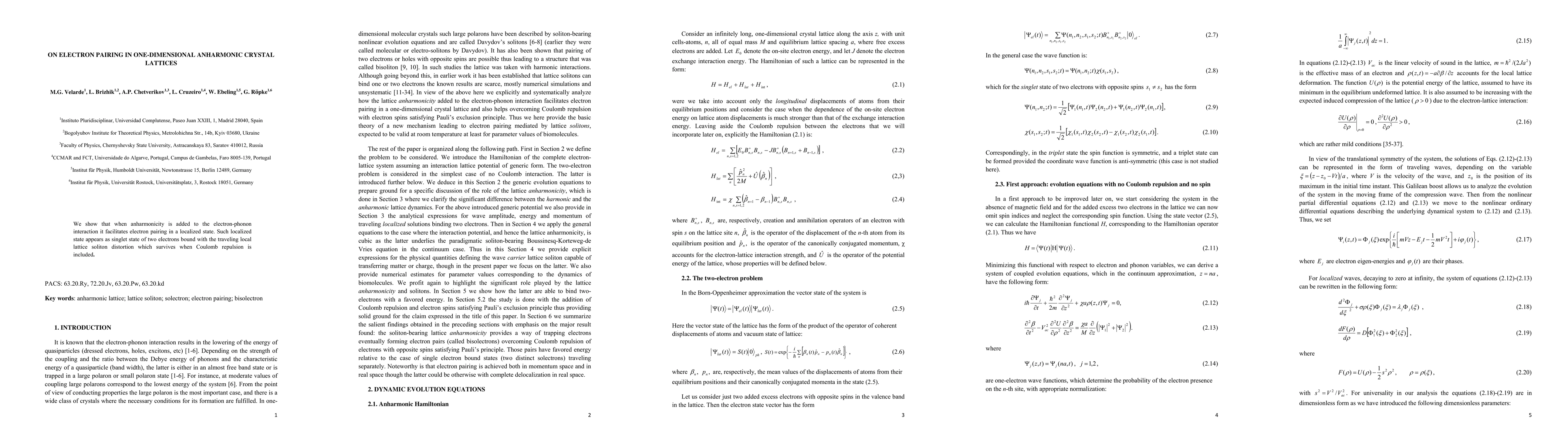 Summary: This study demonstrates that anharmonicity in electron-phonon interactions promotes electron pairing in one-dimensional crystal lattices, resulting in a localized singlet state bound by a traveling lattice soliton, even with Coulomb repulsion considered.