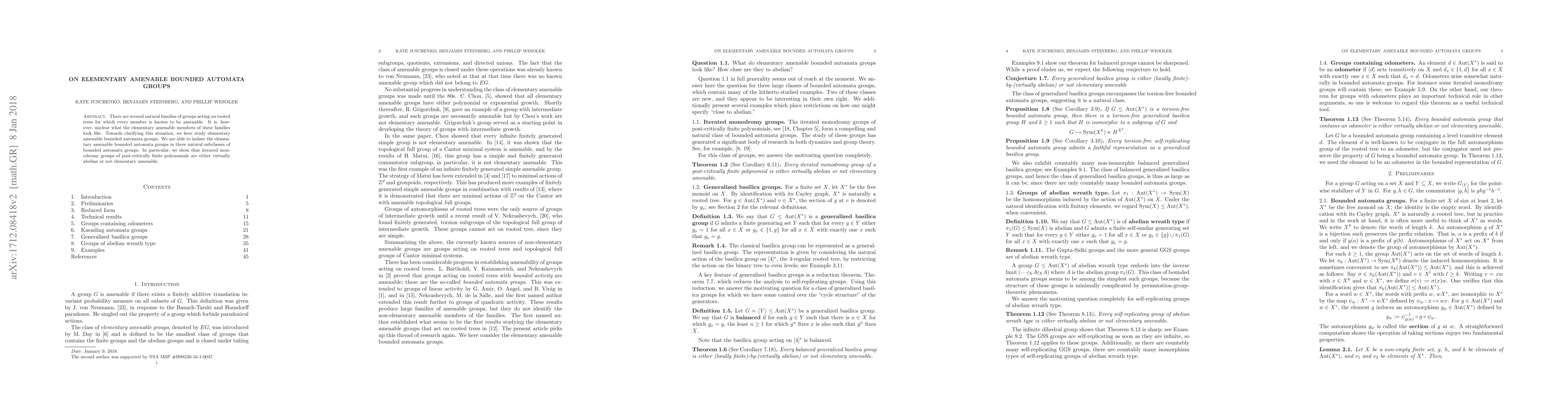 This paper investigates elementary amenable bounded automata groups, identifying them within three subclasses of bounded automata groups. It concludes that iterated monodromy groups of post-critically finite polynomials are either virtually abelian or not elementary amenable.