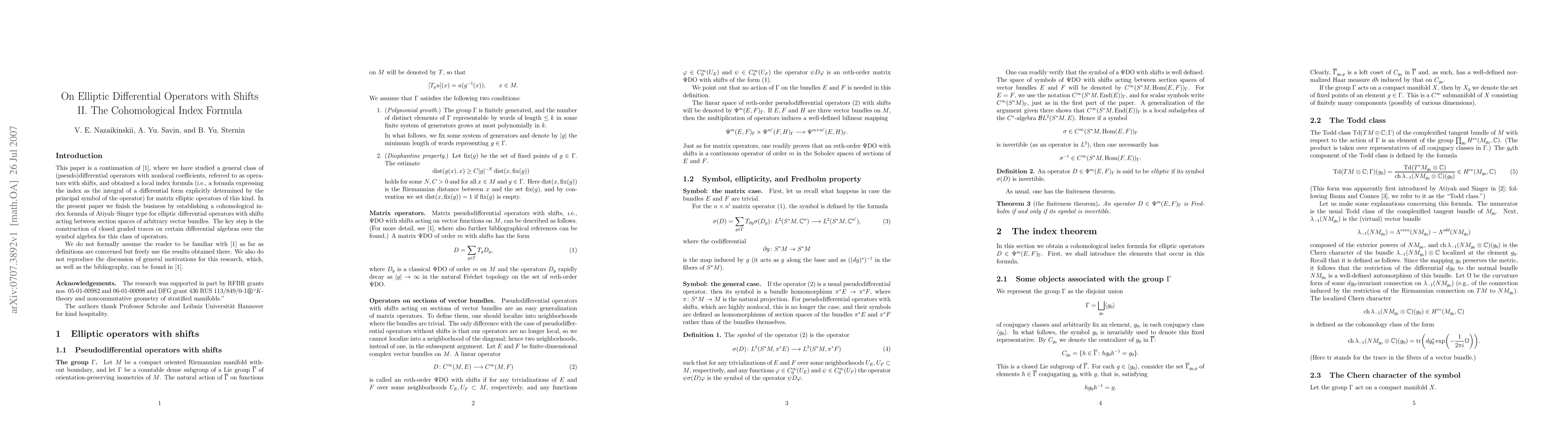 This paper establishes a cohomological index formula for elliptic differential operators with shifts, allowing for calculations of the Atiyah-Singer type.