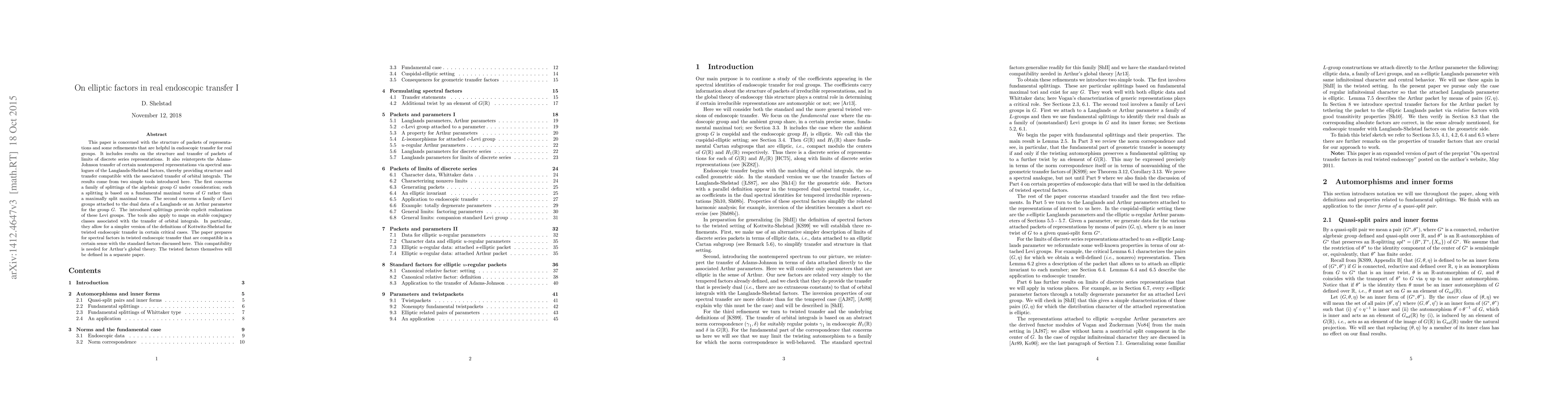 The paper introduces novel methods and tools for analyzing packets of representations and their transfer for real groups, particularly focusing on elliptic factors in the endoscopic transfer.