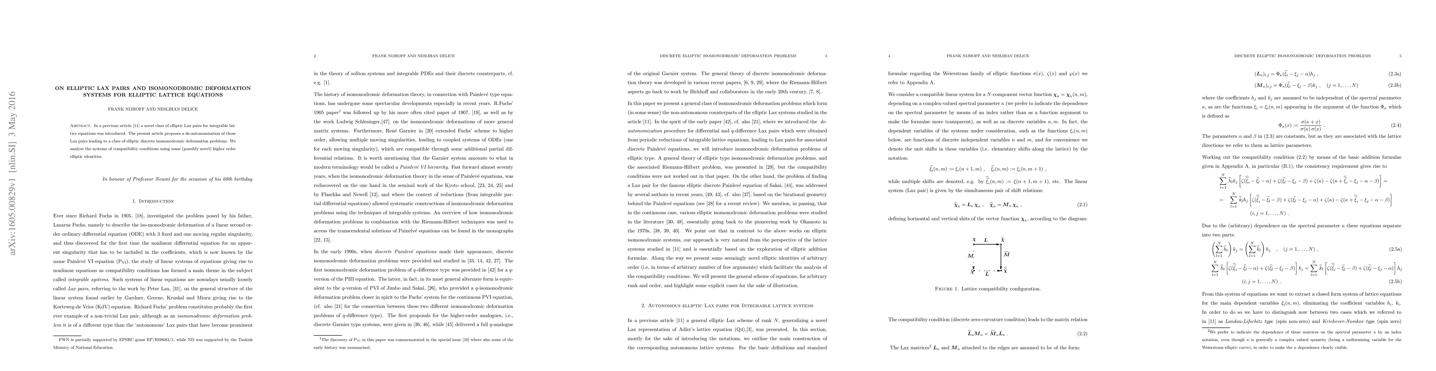 This paper extends previous work on elliptic Lax pairs for integrable lattice equations by proposing a de-autonomisation process that results in elliptic discrete isomonodromic deformation problems. The authors analyze the compatibility conditions of these systems using new higher-order elliptic identities.