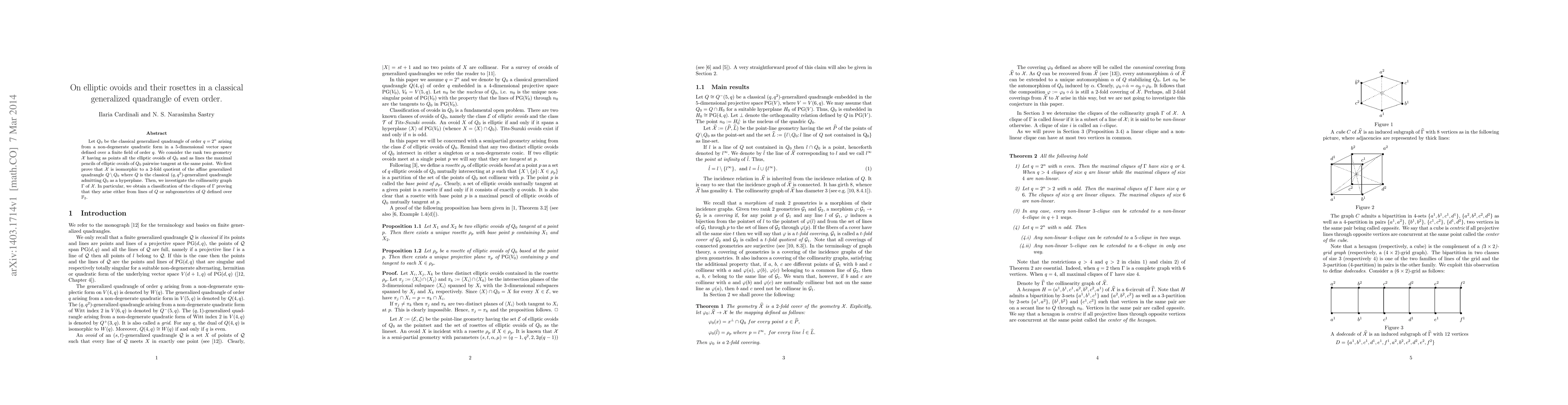 Let Q_0 be the classical generalized quadrangle of order q = 2n arising from a non-degenerate quadratic form in a 5-dimensional vector space defined over a finite field of order q. We consider the rank two geometry X having as points all the elliptic ovoids of Q_0 and as lines the maximal pencils of elliptic ovoids of Q_0 pairwise tangent at the same point. We first prove that X is isomorphic to a 2-fold quotient of the affine generalized quadrangle Q \setminus Q_0 where Q is the classical (q; q^2)-generalized quadrangle admitting Q_0 as a hyperplane. Then, we investigate the collinearity graph \Gamma of X: In particular, we obtain a classification of the cliques of \Gamma proving that they arise either from lines of Q or subgeometries of Q defined over F_2