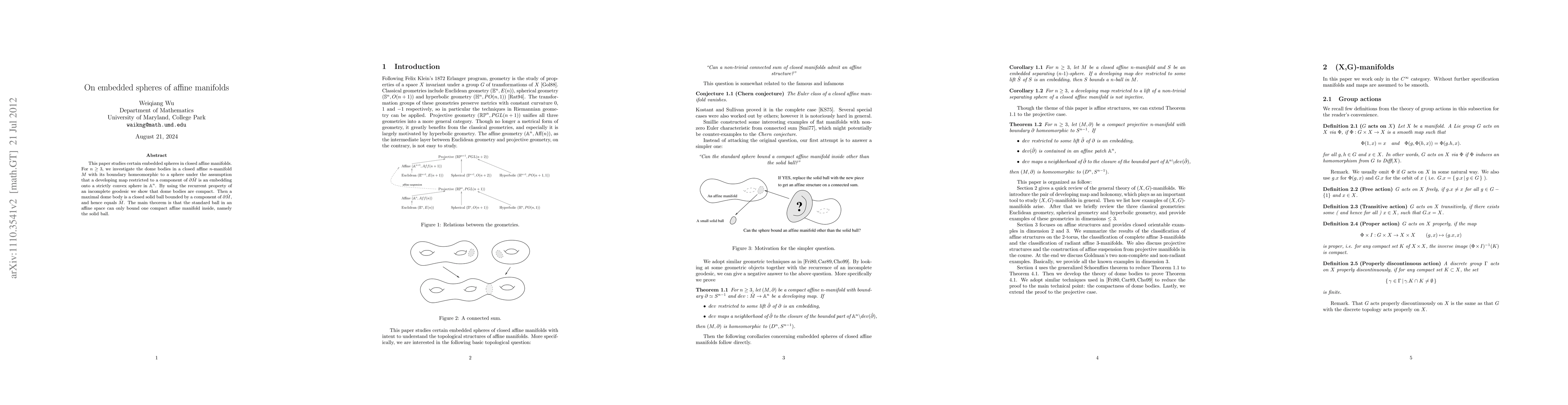 This paper studies certain embedded spheres in closed affine manifolds. For $n \geq 3$, we investigate the dome bodies in a closed affine $n$-manifold $M$ with its boundary homeomorphic to a sphere under the assumption that a developing map restricted to a component of $\partial\hat{M}$ is an embedding onto a strictly convex sphere in $\mathbb{A}^n$. By using the recurrent property of an incomplete geodesic we show that dome bodies are compact. Then a maximal dome body is a closed solid ball bounded by a component of $\partial\hat{M}$, and hence equals $\hat{M}$. The main theorem is that the standard ball in an affine space can only bound one compact affine manifold inside, namely the solid ball.