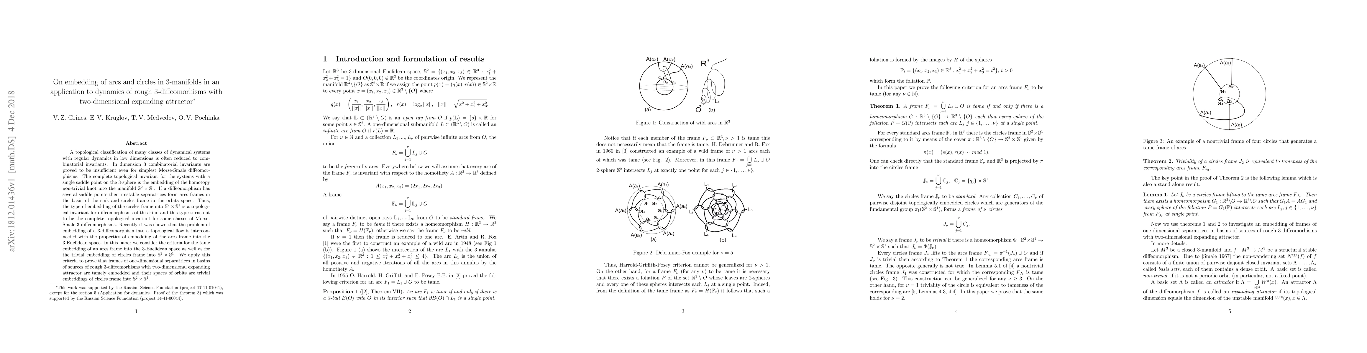 This paper investigates the topological embedding of arcs and circles in 3-manifolds, establishing criteria for tame embeddings of arcs in 3-Euclidean space and trivial embeddings of circle frames in $\mathbb S^2\times\mathbb S^1$. It applies these criteria to demonstrate that the separatrices in rough 3-diffeomorphisms with expanding attractors are tamely embedded.