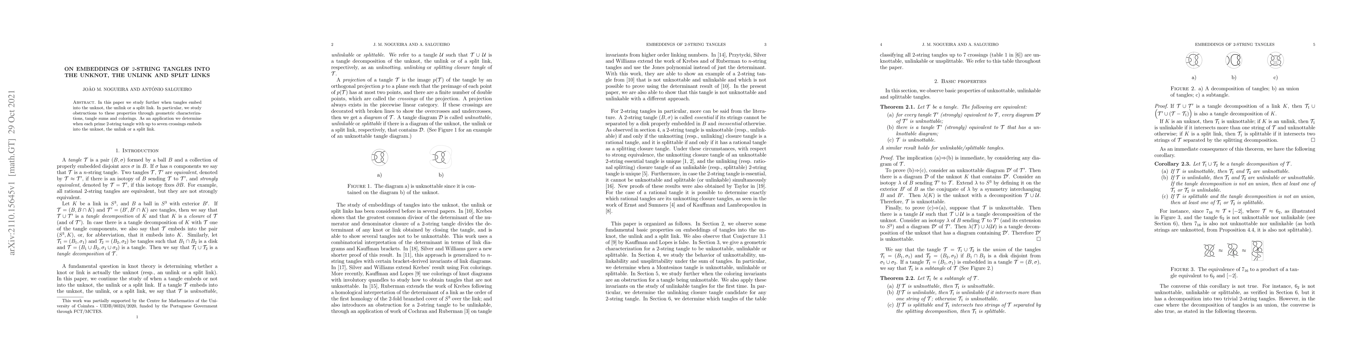 Researchers studied when 2-string tangles embed into specific knots and links, identifying obstructions and conditions for embedding through geometric characterizations and colorings.