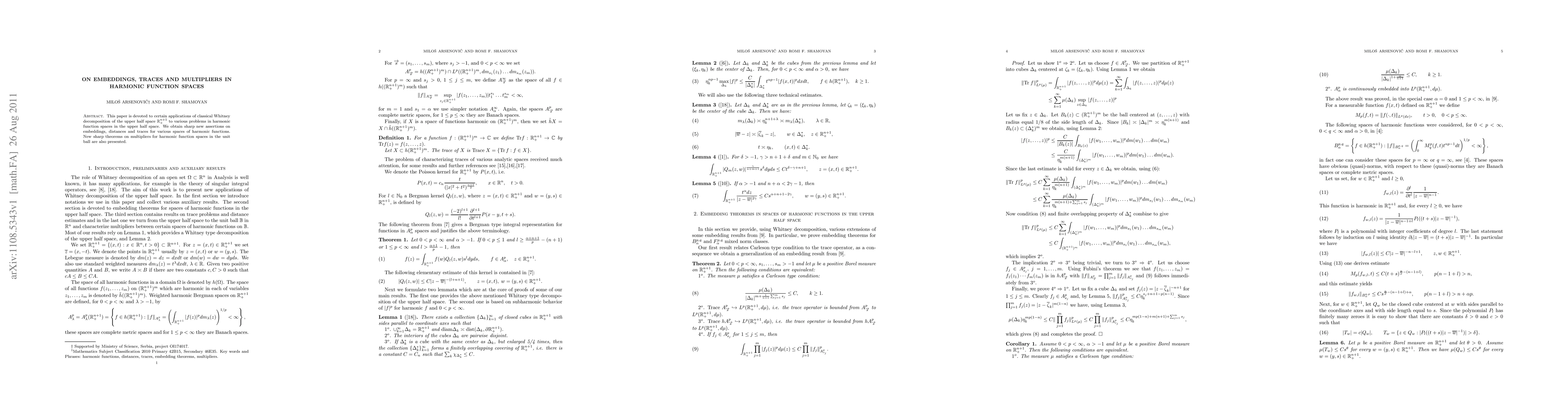 This paper applies Whitney decomposition to harmonic function spaces, deriving sharp results on embeddings, distances, traces, and new theorems on multipliers for harmonic functions in both the upper half space and the unit ball.