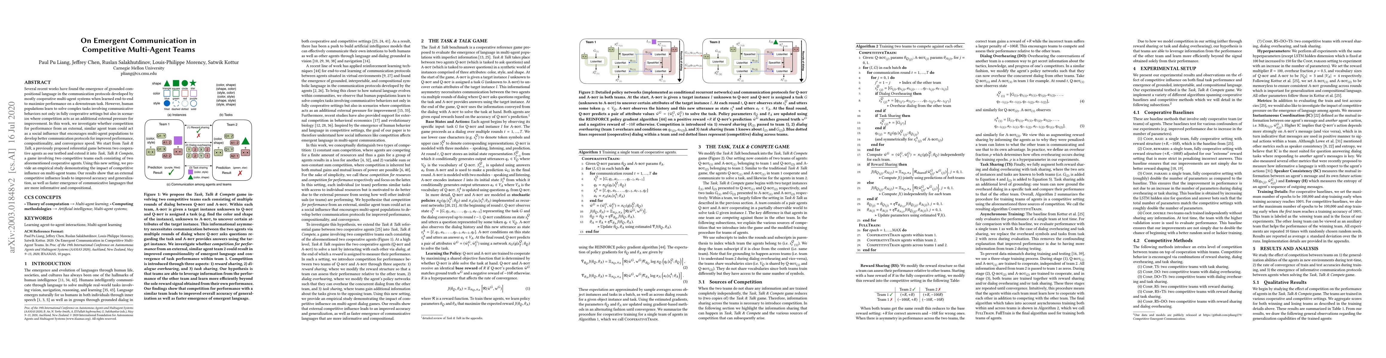 This paper investigates how competition between multi-agent teams influences the development of communication protocols, showing that competitive pressure enhances accuracy, generalization, and the emergence of more informative and compositional languages. The study extends a cooperative referential game into a competitive setting to empirically demonstrate these effects.