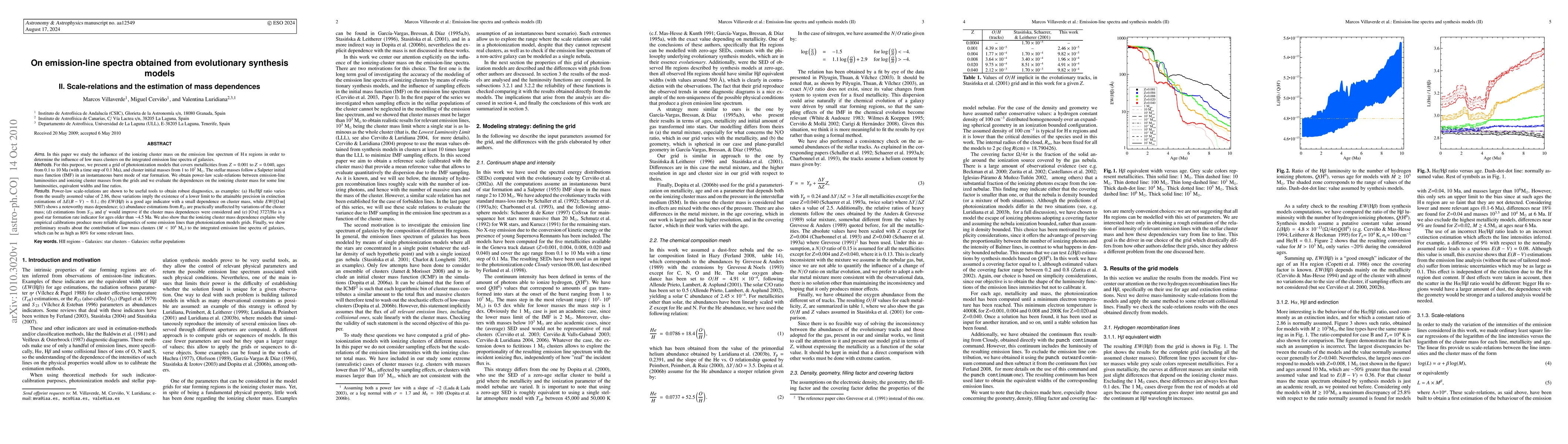 Aims. In this paper we study the influence of the ionizing cluster mass on the emission line spectrum of Hii regions in order to determine the influence of low mass clusters on the integrated emission line spectra of galaxies. Methods. For this purpose, we present a grid of photoionization models that covers metallicities from Z = 0.001 to Z = 0.040, ages from 0.1 to 10 Ma (with a time step of 0.1 Ma), and cluster initial masses from 1 to 107 Mo. The stellar masses follow a Salpeter initial mass function (IMF) in an instantaneous burst mode of star formation. We obtain power-law scale-relations between emission-line luminosities and ionizing cluster masses from the grids and we evaluate the dependences on the ionizing cluster mass for some line luminosities, equivalent widths and line ratios. Results. Power-law scale-relations are shown to be useful tools to obtain robust diagnostics, as examples: (a) H?/H? ratio varies from the usually assumed value of 2.86, these variations imply the existence of a lower limit to the attainable precision in extinction estimations of ?E(B - V) ~ 0.1.; (b) EW(H?) is a good age indicator with a small dependence on cluster mass, while EW([O iii] 5007) shows a noteworthy mass dependence; (c) abundance estimations from R23 are practically unaffected by variations of the cluster mass; (d) estimations from S 23 and ?' would improve if the cluster mass dependences were considered and (e) [Oii] 3727/H? is a good star formation rate indicator for ages older than -4.5 Ma. We also show that the ionizing cluster mass dependence explains why empirical calibrations produce more reliable diagnostics of some emission lines than photoionization models grids. Finally, we show preliminary results about the contribution of low mass clusters (M < 104 Mo) to the integrated emission line spectra of galaxies, which can be as high as 80% for some relevant lines.