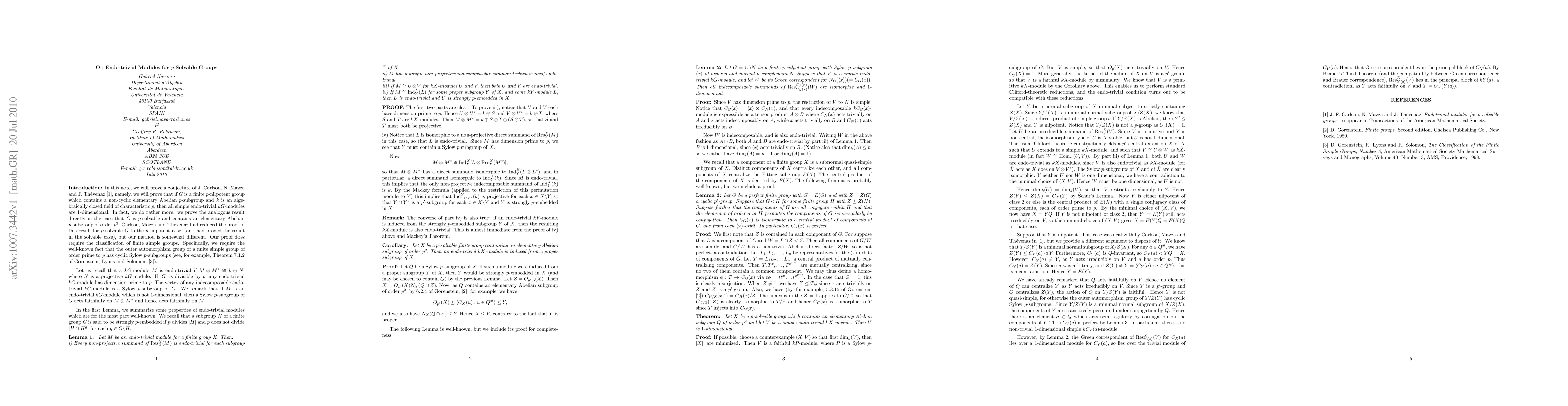 This paper confirms a conjecture regarding finite $p$-nilpotent groups with non-cyclic elementary Abelian $p$-subgroups, proving that all simple endo-trivial modules over such groups in an algebraically closed field of characteristic $p$ are $1$-dimensional.