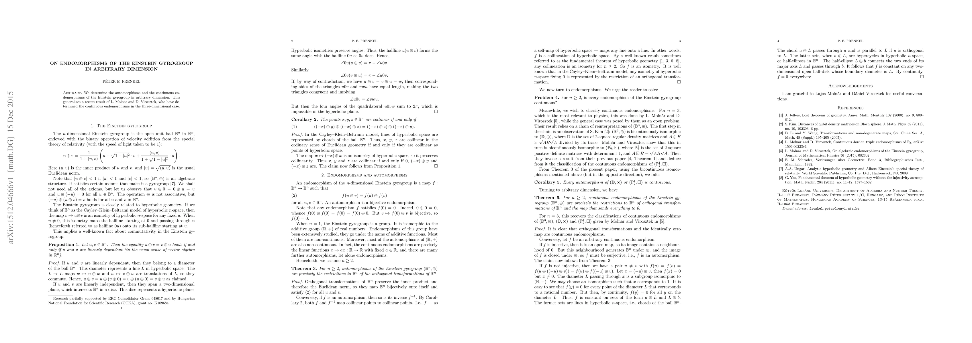 We determine the automorphisms and the continuous endomorphisms of the Einstein gyrogroup in arbitrary dimension. This generalizes a recent result of Lajos Moln\'ar and D\'aniel Virosztek, who have determined the continuous endomorphisms in the three-dimensional case.