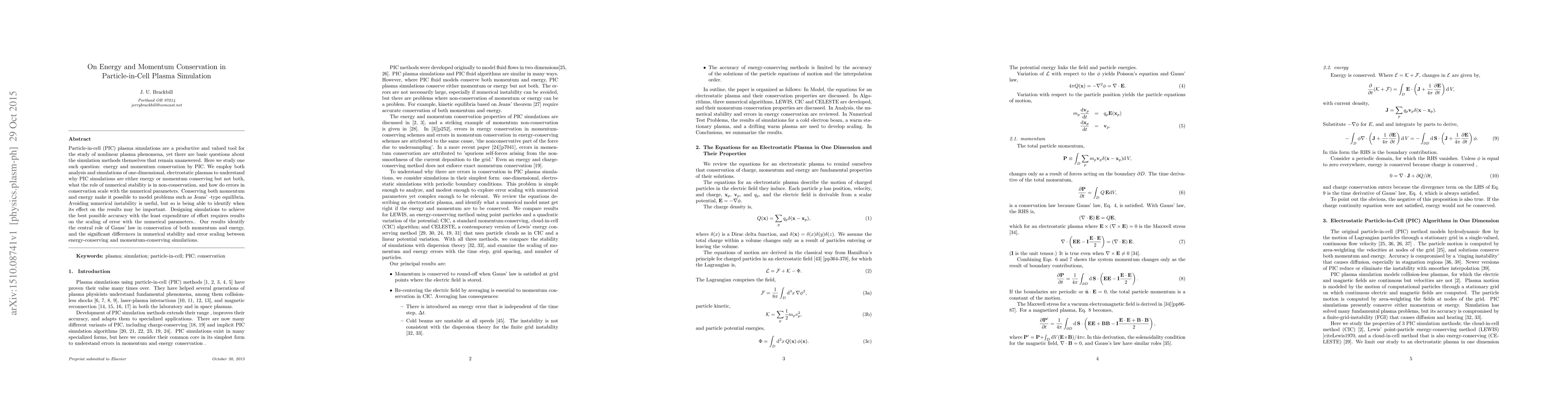 This paper investigates the conservation of energy and momentum in particle-in-cell (PIC) plasma simulations, revealing the central role of Gauss' law in achieving both conservations. It highlights the differences in numerical stability and error scaling between energy-conserving and momentum-conserving PIC simulations.