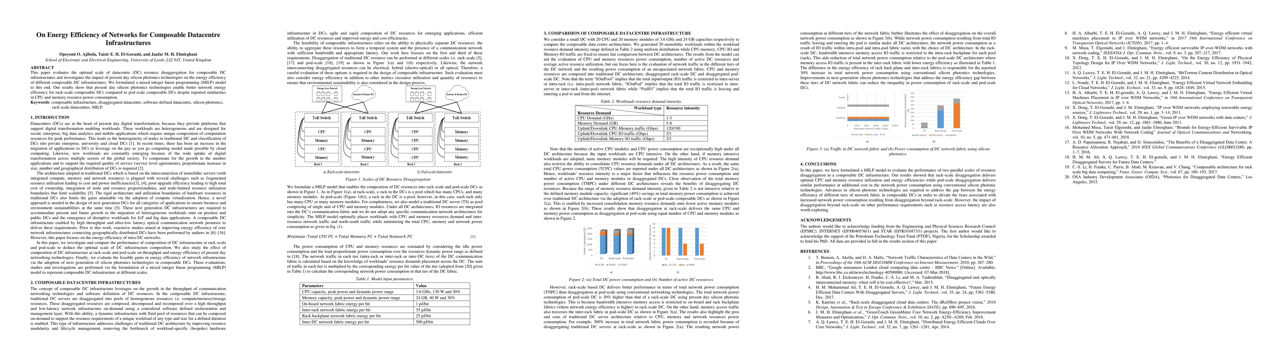 This paper evaluates the optimal scale of datacentre (DC) resource disaggregation for composable DC infrastructures and investigates the impact of present day silicon photonics technologies on the energy efficiency of different composable DC infrastructures. We formulated a mixed integer linear programming (MILP) model to this end. Our results show that present day silicon photonics technologies enable better network energy efficiency for rack-scale composable DCs compared to pod-scale composable DCs despite reported similarities in CPU and memory resource power consumption.
