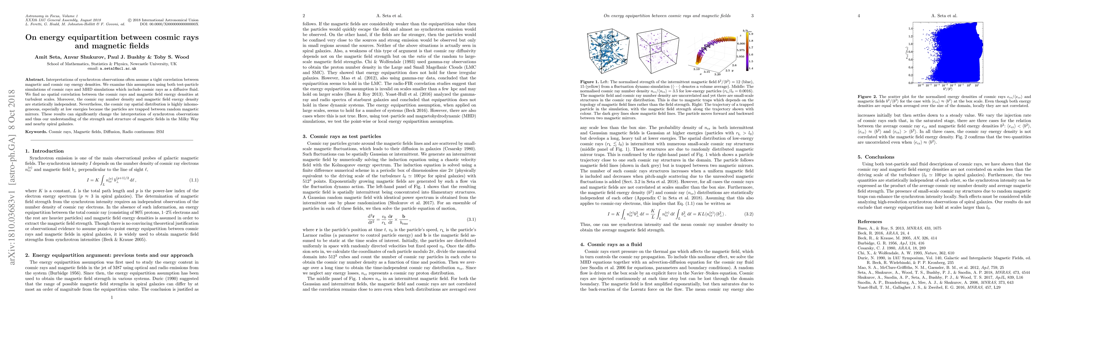 Interpretations of synchrotron observations often assume a tight correlation between magnetic and cosmic ray energy densities. We examine this assumption using both test-particle simulations of cosmic rays and MHD simulations which include cosmic rays as a diffusive fluid. We find no spatial correlation between the cosmic rays and magnetic field energy densities at turbulent scales. Moreover, the cosmic ray number density and magnetic field energy density are statistically independent. Nevertheless, the cosmic ray spatial distribution is highly inhomogeneous, especially at low energies because the particles are trapped between random magnetic mirrors. These results can significantly change the interpretation of synchrotron observations and thus our understanding of the strength and structure of magnetic fields in the Milky Way and nearby spiral galaxies.
