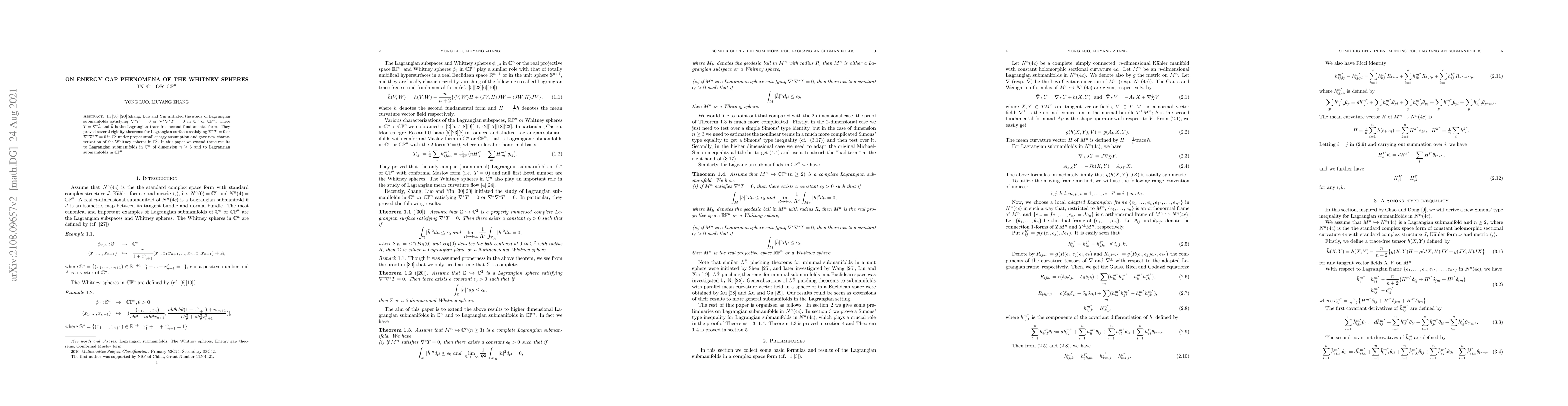 This paper extends the rigidity theorems and characterizations of Whitney spheres initiated by Zhang, Luo, and Yin for Lagrangian surfaces in $\mathbb{C}^2$ to higher dimensions in $\mathbb{C}^n$ and $\mathbb{CP}^n$. The study focuses on Lagrangian submanifolds satisfying specific conditions on their second fundamental forms.