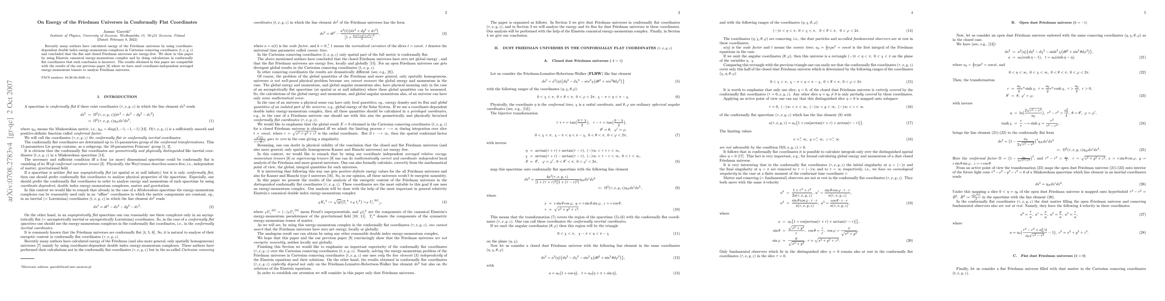 This paper challenges the conclusion that flat and closed Friedman universes are energy-free, demonstrating through Einstein canonical energy-momentum complex and conformally flat coordinates that they possess energy. The findings align with previous results using coordinate-independent averaged relative energy-momentum tensors.