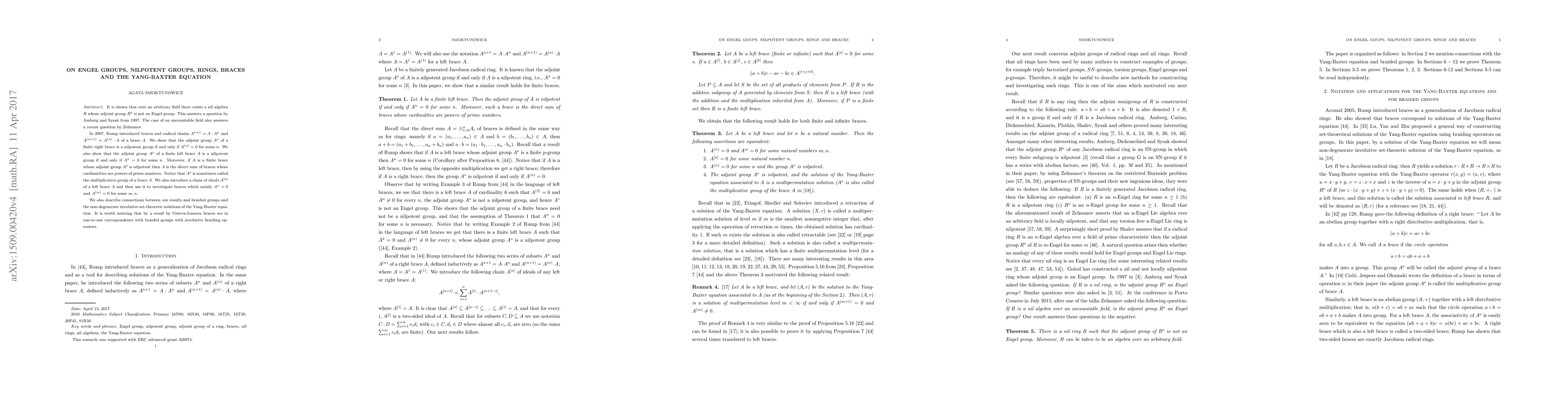 Researchers prove that certain mathematical structures like Engel groups, nilpotent groups, and Yang-Baxter equations are connected to each other through specific properties of brace algebras, with implications for fields such as algebraic geometry and combinatorics.