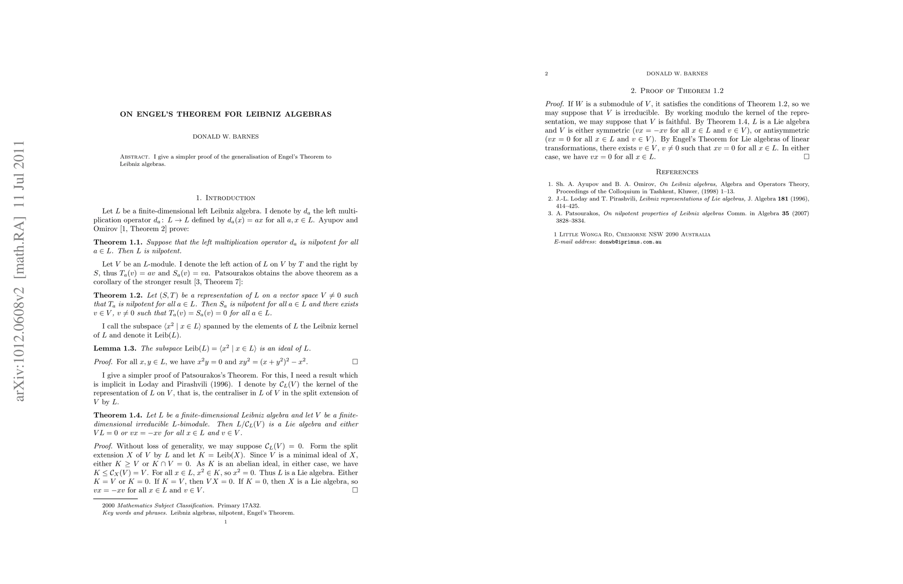 Summary: This paper presents a more straightforward proof of Engel's Theorem's generalization to Leibniz algebras, providing clarity and simplicity in the argumentation.