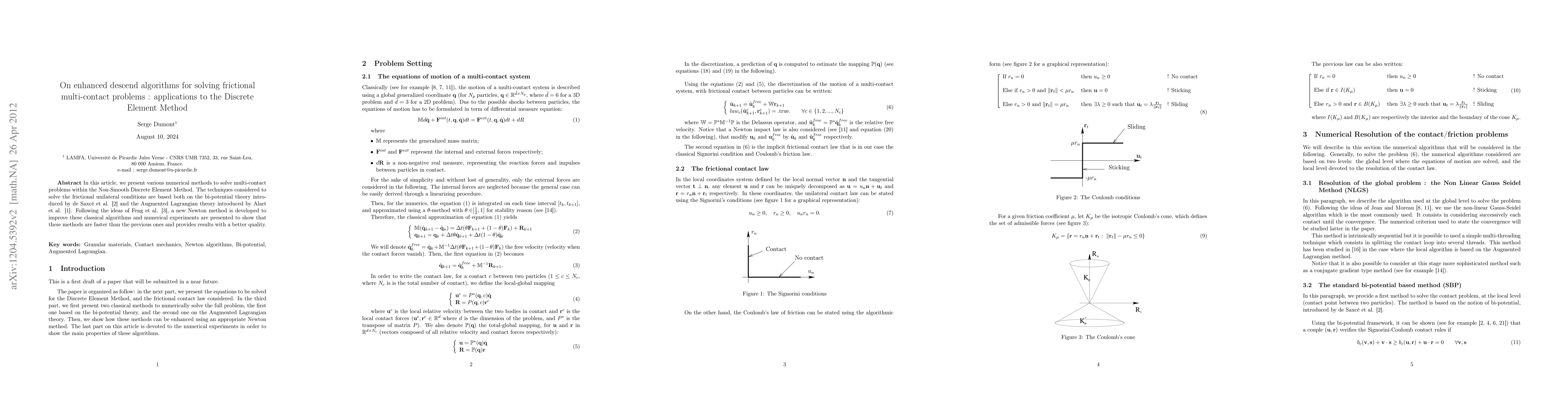 Researchers developed new algorithms to solve complex frictional multi-contact problems using the Discrete Element Method, improving existing methods for better accuracy.