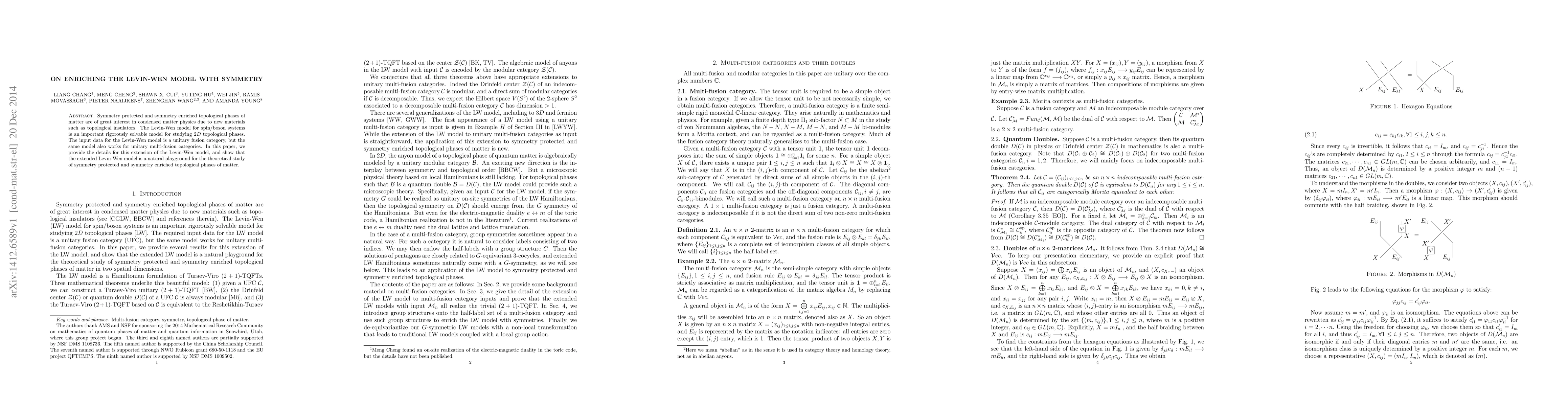 Symmetry protected and symmetry enriched topological phases of matter are of great interest in condensed matter physics due to new materials such as topological insulators. The Levin-Wen model for spin/boson systems is an important rigorously solvable model for studying $2D$ topological phases. The input data for the Levin-Wen model is a unitary fusion category, but the same model also works for unitary multi-fusion categories. In this paper, we provide the details for this extension of the Levin-Wen model, and show that the extended Levin-Wen model is a natural playground for the theoretical study of symmetry protected and symmetry enriched topological phases of matter.