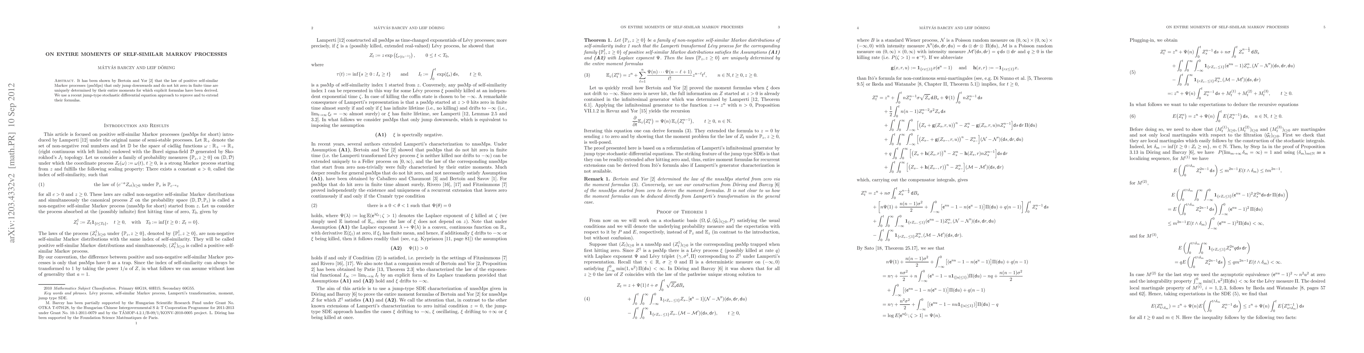 This paper reproves and extends the unique determination of positive self-similar Markov processes by their entire moments, using a new jump-type stochastic differential equation approach, building on the foundational work of Bertoin and Yor (2002).