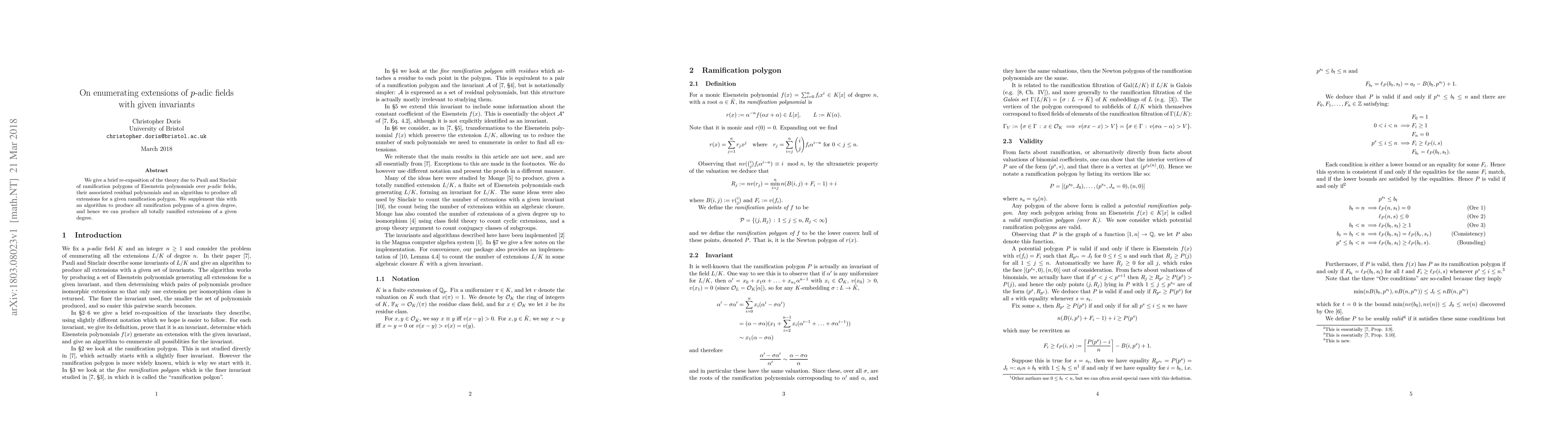 A computational approach was used to enumerate extension fields of p-adic fields with given invariants.