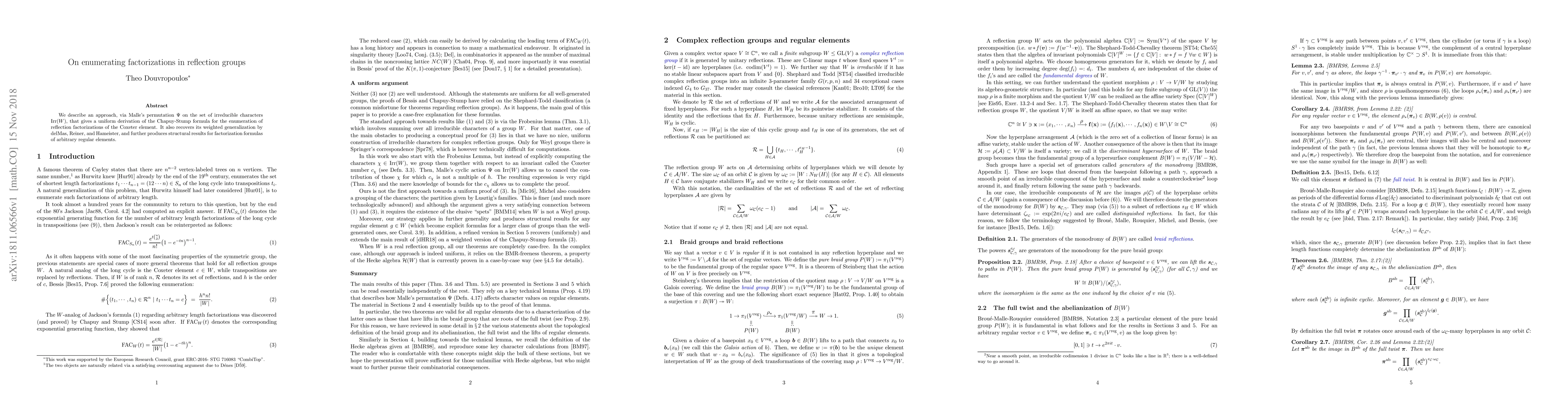 We describe an approach, via Malle's permutation $\Psi$ on the set of irreducible characters $\text{Irr}(W)$, that gives a uniform derivation of the Chapuy-Stump formula for the enumeration of reflection factorizations of the Coxeter element. It also recovers its weighted generalization by delMas, Reiner, and Hameister, and further produces structural results for factorization formulas of arbitrary regular elements.