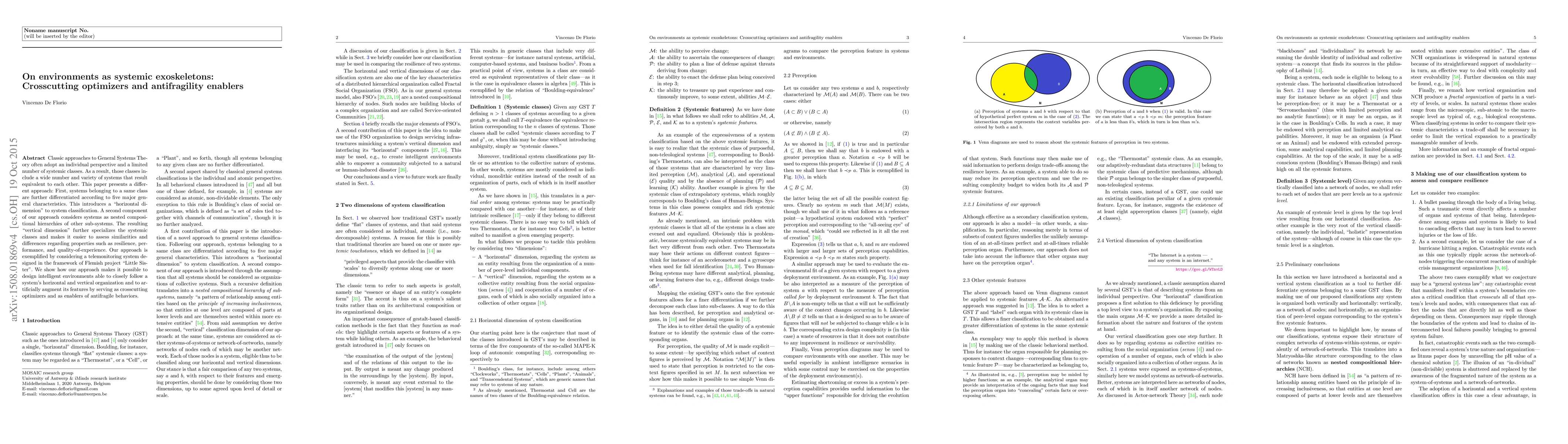 Classic approaches to General Systems Theory often adopt an individual perspective and a limited number of systemic classes. As a result, those classes include a wide number and variety of systems that result equivalent to each other. This paper introduces a different approach: First, systems belonging to a same class are further differentiated according to five major general characteristics. This introduces a "horizontal dimension" to system classification. A second component of our approach considers systems as nested compositional hierarchies of other sub-systems. The resulting "vertical dimension" further specializes the systemic classes and makes it easier to assess similarities and differences regarding properties such as resilience, performance, and quality-of-experience. Our approach is exemplified by considering a telemonitoring system designed in the framework of Flemish project "Little Sister". We show how our approach makes it possible to design intelligent environments able to closely follow a system's horizontal and vertical organization and to artificially augment its features by serving as crosscutting optimizers and as enablers of antifragile behaviors.
