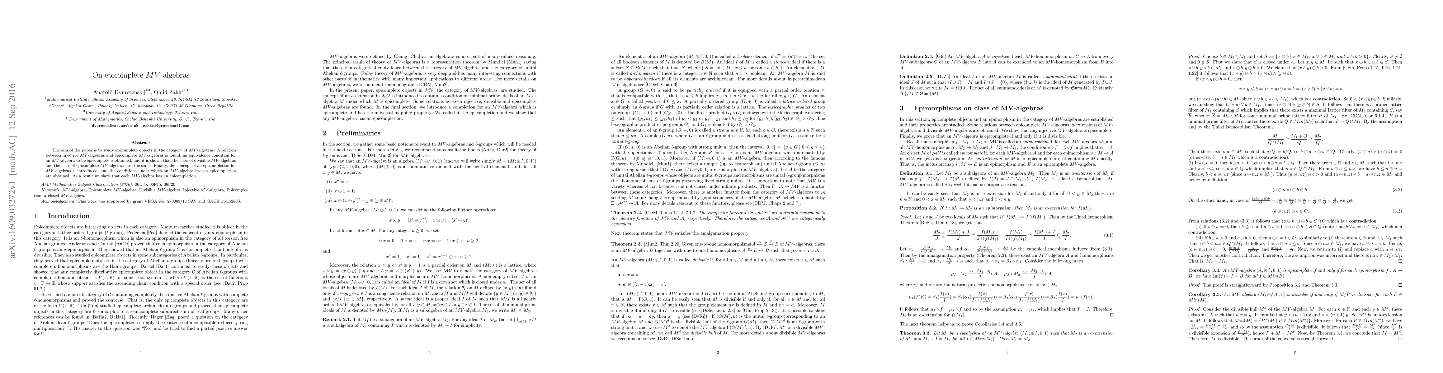 This research introduces new concepts and techniques for studying MV-algebras, including the notion of epicomplete MV-algebras and a new characterization of weakly divisible MV-algebras.