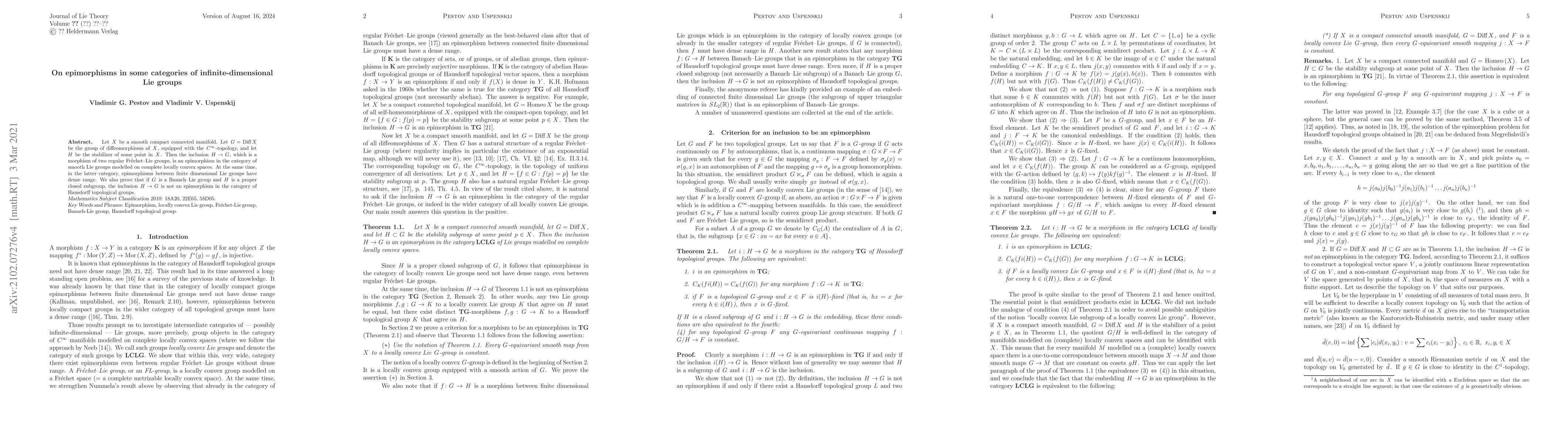 A study shows that in certain categories of infinite-dimensional Lie groups, the inclusion of a stabilizer subgroup is an epimorphism, while in others, it's not; this has implications for understanding epimorphisms in various mathematical contexts.