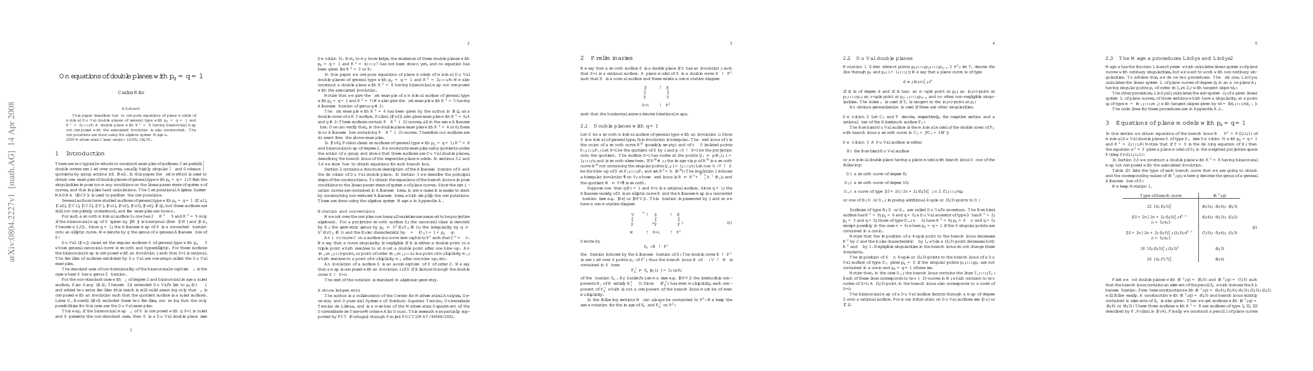This paper details the computation of equations for minimal Du Val double plane models of general type with $p_g=q=1$ and $K^2$ values ranging from 2 to 8, employing Magma for the calculations, and constructs a specific double plane with $K^2=8$ whose bicanonical map is not composed with the associated involution.