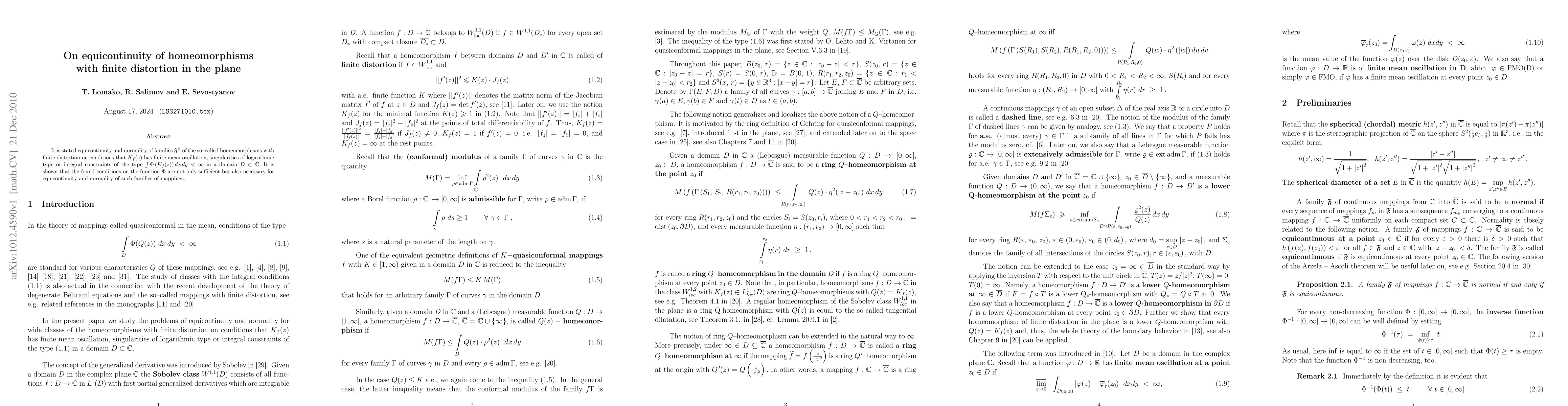 It is stated equicontinuity and normality of families $\frak{F}^{\Phi}$ of the so--called homeomorphisms with finite distortion on conditions that $K_{f}(z)$ has finite mean oscillation, singularities of logarithmic type or integral constraints of the type $\int\Phi\left(K_{f}(z)\right)dx\,dy<\infty$ in a domain $D\subset{\C}.$ It is shown that the found conditions on the function $\Phi$ are not only sufficient but also necessary for equicontinuity and normality of such families of mappings.