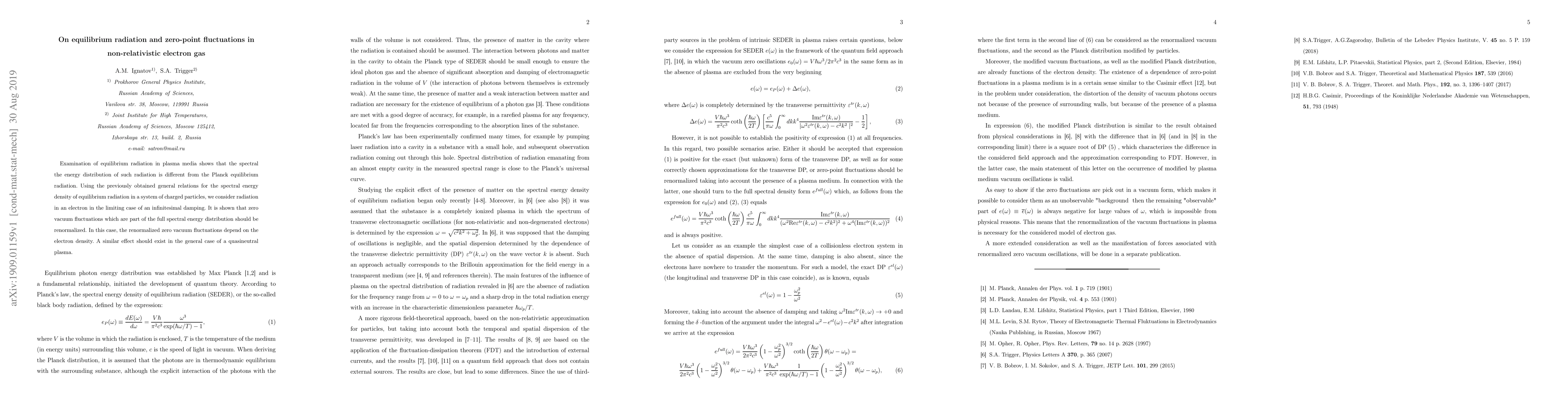 This paper investigates the spectral energy distribution of equilibrium radiation in non-relativistic electron gas, revealing deviations from Planck's law. It demonstrates that zero-point vacuum fluctuations need renormalization, which depends on electron density, applicable in quasineutral plasmas.