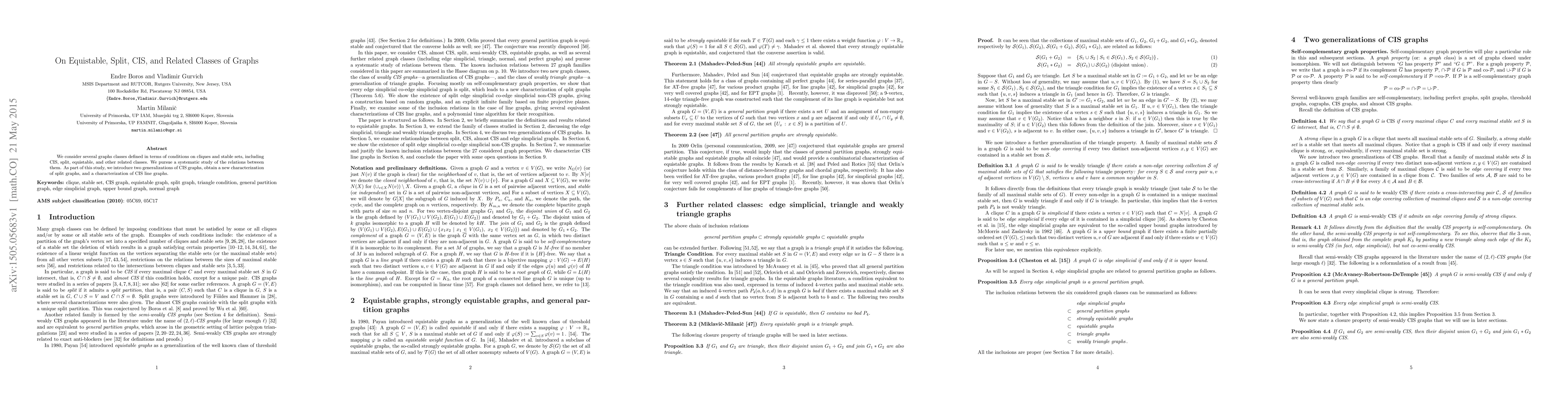 The paper systematically studies the relations between several graph classes, including CIS, split, equistable, and related classes, by introducing generalizations of CIS graphs and obtaining new characterizations for split and CIS line graphs.