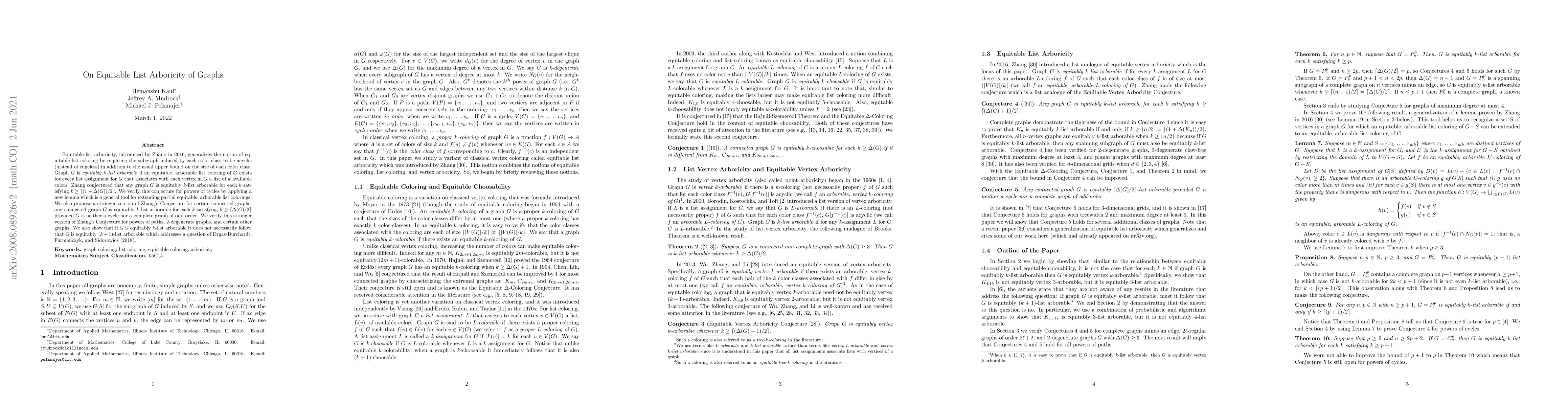 Equitable list arboricity, introduced by Zhang in 2016, generalizes the notion of equitable list coloring by requiring the subgraph induced by each color class to be acyclic (instead of edgeless) in addition to the usual upper bound on the size of each color class. Graph $G$ is equitably $k$-list arborable if an equitable, arborable list coloring of $G$ exists for every list assignment for $G$ that associates with each vertex in $G$ a list of $k$ available colors. Zhang conjectured that any graph $G$ is equitably $k$-list arborable for each $k$ satisfying $k \geq \lceil (1+\Delta(G))/2 \rceil$. We verify this conjecture for powers of cycles by applying a new lemma which is a general tool for extending partial equitable, arborable list colorings. We also propose a stronger version of Zhang's Conjecture for certain connected graphs: any connected graph $G$ is equitably $k$-list arborable for each $k$ satisfying $k \geq \lceil \Delta(G)/2 \rceil$ provided $G$ is neither a cycle nor a complete graph of odd order. We verify this stronger version of Zhang's Conjecture for powers of paths, 2-degenerate graphs, and certain other graphs. We also show that if $G$ is equitably $k$-list arborable it does not necessarily follow that $G$ is equitably $(k+1)$-list arborable which addresses a question of Drgas-Burchardt, Furmanczyk, and Sidorowicz (2018).