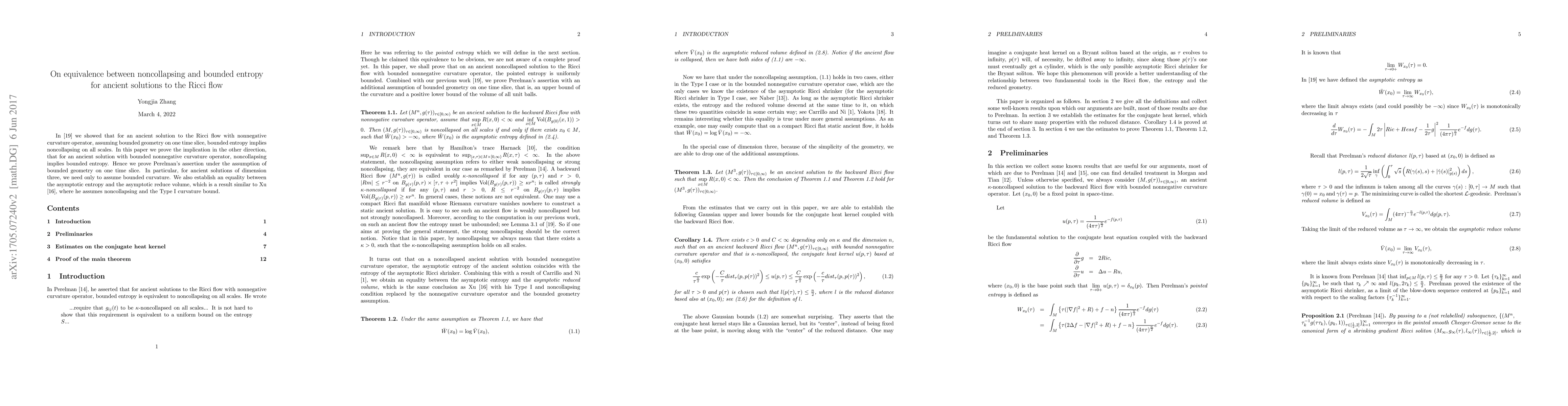 This paper proves the equivalence between noncollapsing and bounded entropy for ancient solutions to the Ricci flow, completing the result initiated in previous work. It establishes that noncollapsing implies bounded entropy for ancient solutions with bounded nonnegative curvature, thus confirming Perelman's assertion under the assumption of bounded geometry on one time slice, particularly for three-dimensional solutions.