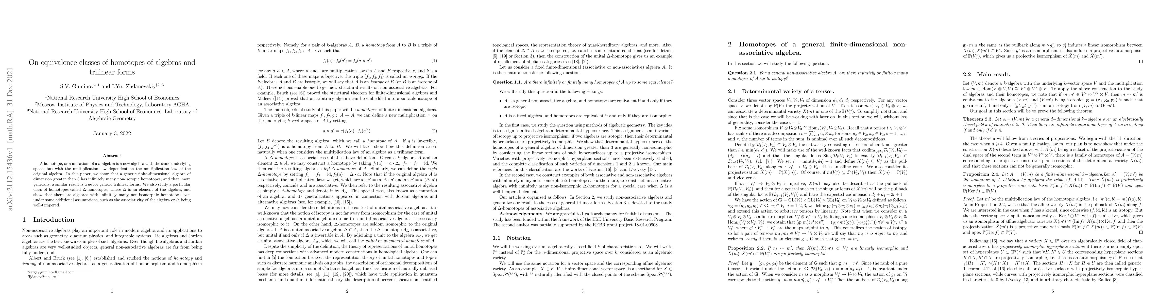 A study found that generic finite-dimensional algebras have infinitely many non-isotopic homotopes, which are mutations of the algebra with different multiplication laws, and this result also applies to trilinear forms in a more general sense.