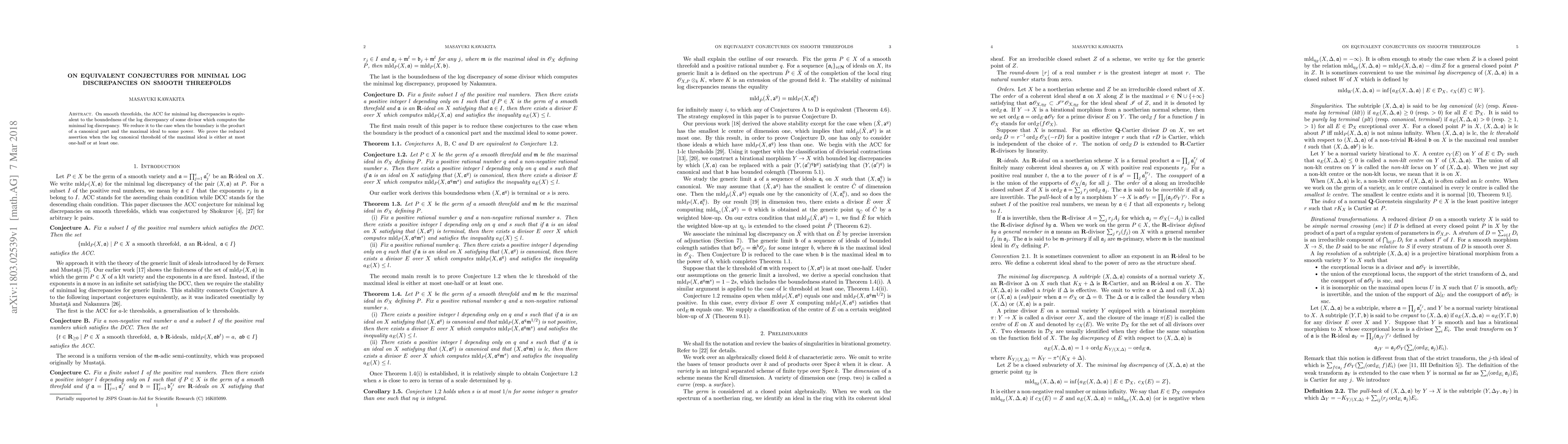 This paper proves that on smooth threefolds, the Ascending Chain Condition (ACC) for minimal log discrepancies is equivalent to the boundedness of a specific divisor's log discrepancy. It simplifies the problem to cases involving canonical parts and maximal ideals, proving the assertion under certain conditions on log canonical thresholds.