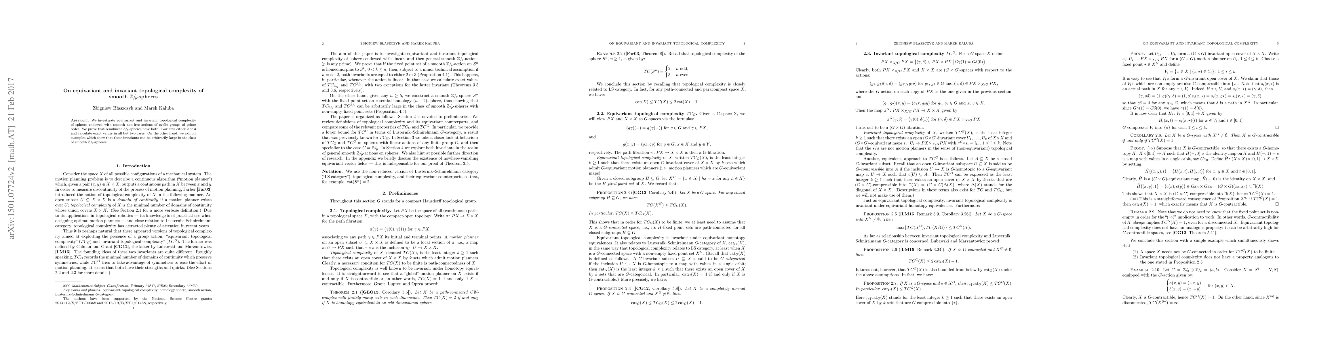 The paper establishes relationships between equivariant and invariant topological complexity and Lusternik-Schnirelmann category for smooth $\mathbb{Z}/p$-spheres, providing bounds and examples for these complexities.