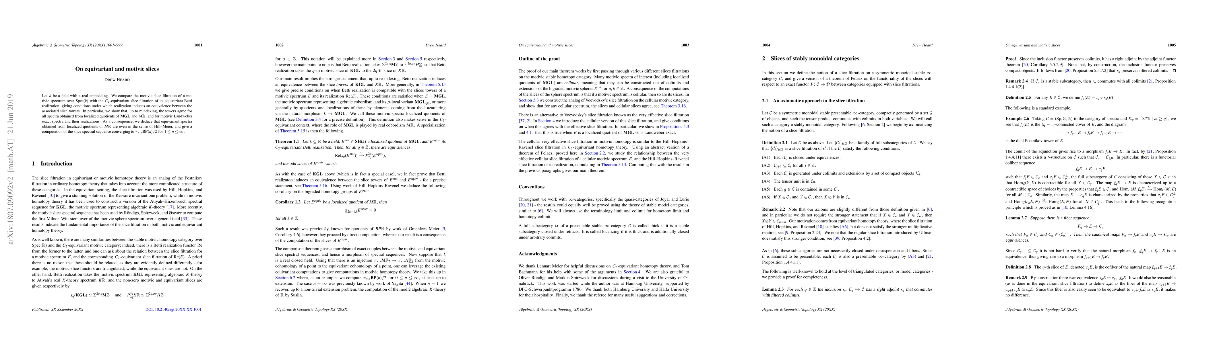 Let $k$ be a field with a real embedding. We compare the motivic slice filtration of a motivic spectrum over $Spec(k)$ with the $C_2$-equivariant slice filtration of its equivariant Betti realization, giving conditions under which realization induces an equivalence between the associated slice towers. In particular, we show that, up to reindexing, the towers agree for all spectra obtained from localized quotients of $MGL$ and $MR$, and for motivic Landweber exact spectra and their realizations. As a consequence, we deduce that equivariant spectra obtained from localized quotients of $MR$ are even in the sense of Hill--Meier, and give a computation of the slice spectral sequence converging to $\pi_{*,*}BP\langle n \rangle/2$ for $1 \le n \le \infty$.